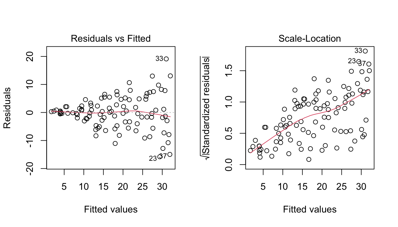 y <- 2 + 1.5 * x + rnorm(20, mean = 0, sd = 2)